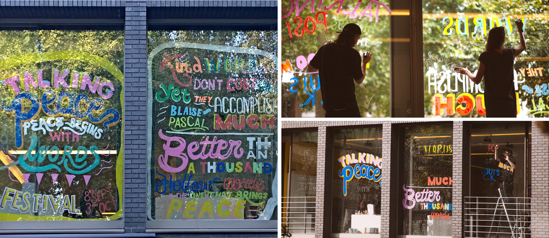 I worked alongside illustrator Llana Hughes to create the window display based around inspirational quotes for the Talking Peace Festival, in partnership with the Hoxton Window Project.